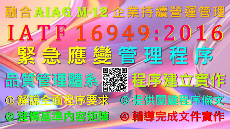 【良益品質工程】AIAG_M-12_企業持續營運管理IATF-16949_QMS緊急應變管理_企業内訓(隨時接受預約)