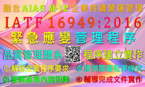 【良益品質工程】AIAG_M-12_企業持續營運管理_IATF-16949_QMS_緊急應變管理_企業内訓