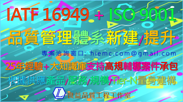 IATF 16949 + ISO 9001 品質管理體系新建/提升輔導承包